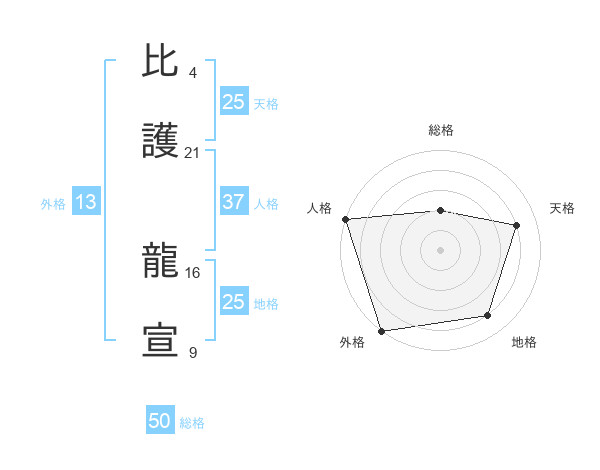 比護 龍宣さんを姓名の画数から五運を鑑定