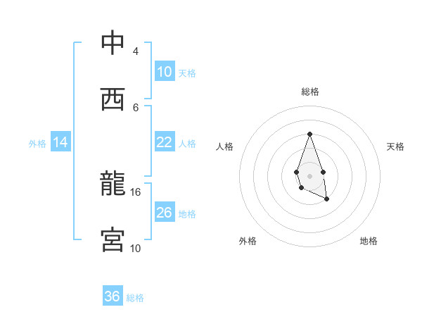 中西 龍宮さんを姓名の画数から五運を鑑定