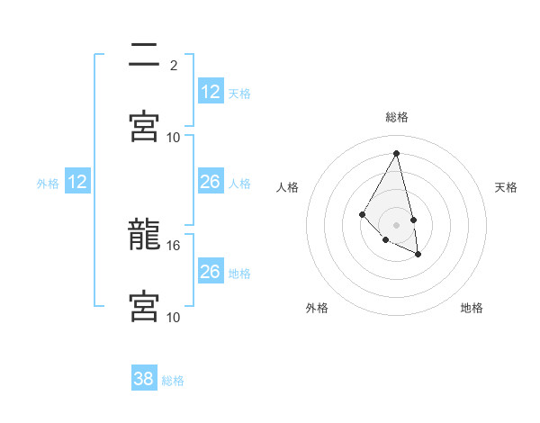 二宮 龍宮さんを姓名の画数から五運を鑑定
