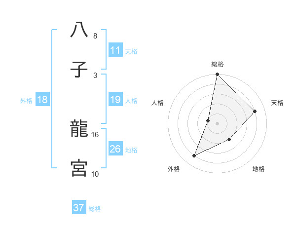 八子 龍宮さんの総格は37画の5点!