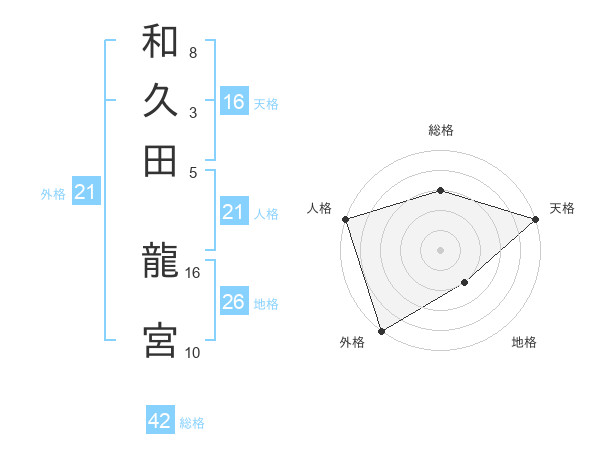 和久田 龍宮さんを姓名の画数から五運を鑑定