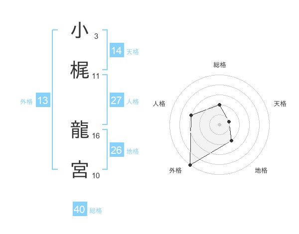 小梶 龍宮さんを姓名の画数から五運を鑑定