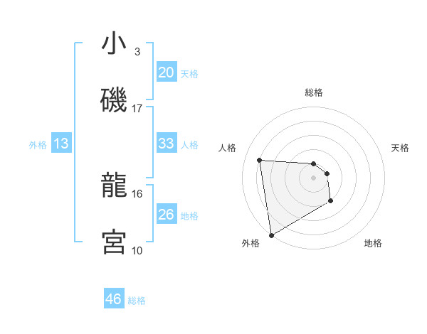 小磯 龍宮さんを姓名の画数から五運を鑑定