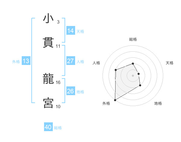 小貫 龍宮さんの外格は13画の5点!