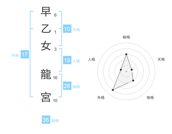 早乙女 龍宮さんを姓名の画数から五運を鑑定
