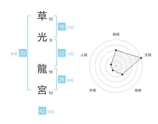 草光 龍宮さんを姓名の画数から五運を鑑定