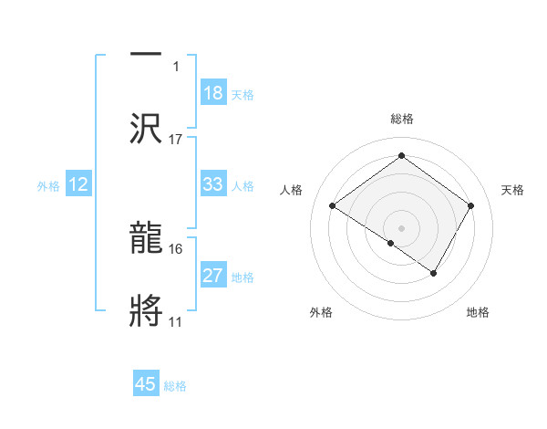 一沢 龍將さんを姓名の画数から五運を鑑定