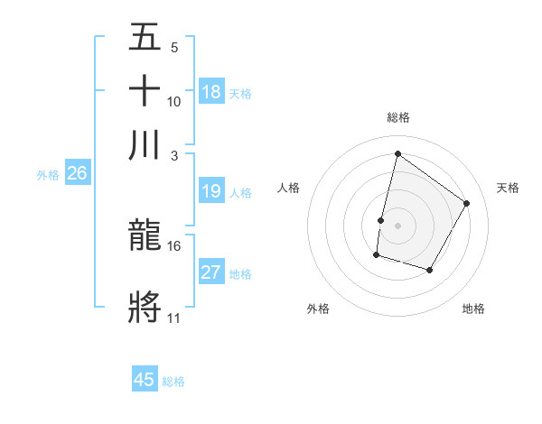 五十川 龍將さんを姓名の画数から五運を鑑定