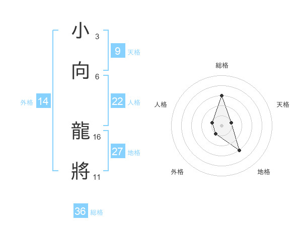 小向 龍將さんの地格は27画の3点!