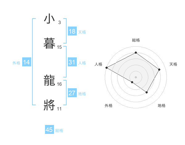 小暮 龍將さんを姓名の画数から五運を鑑定