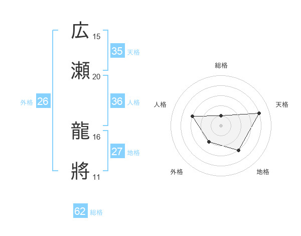 広瀬 龍將さんを姓名の画数から五運を鑑定