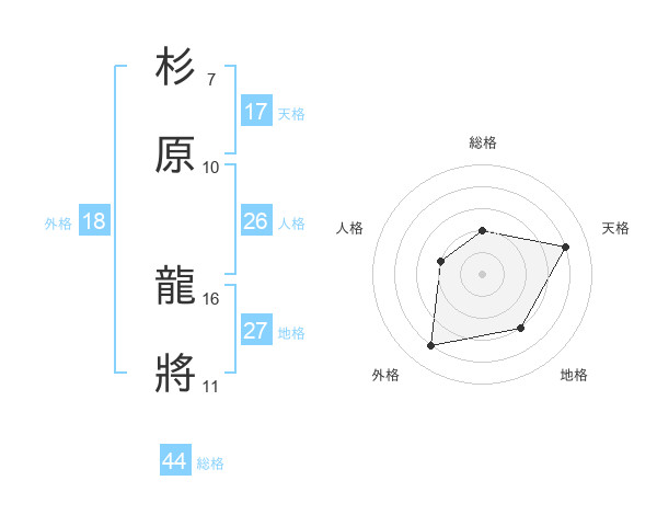 杉原 龍將さんの総格は44画の2点!