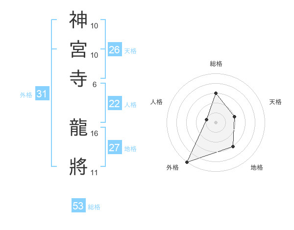 神宮寺 龍將さんを姓名の画数から五運を鑑定