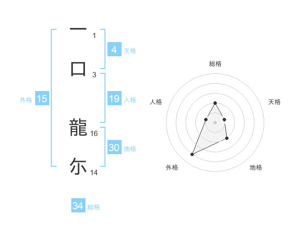 一口 龍尓さんを姓名の画数から五運を鑑定