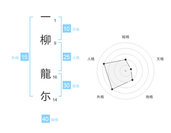 一柳 龍尓さんの総格は40画の2点!