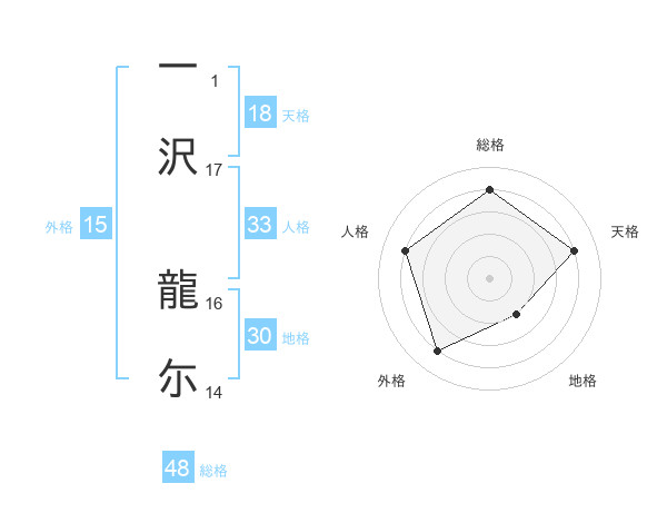 一沢 龍尓さんの地格は30画の2点!