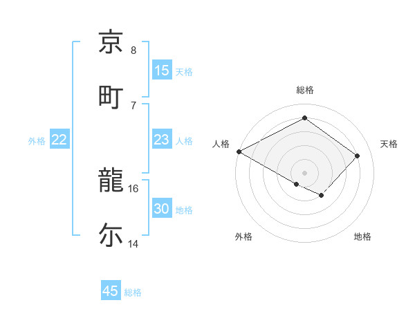 京町 龍尓さんの総格は45画の4点!