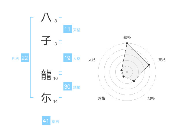 八子 龍尓さんの外格は22画の1点!
