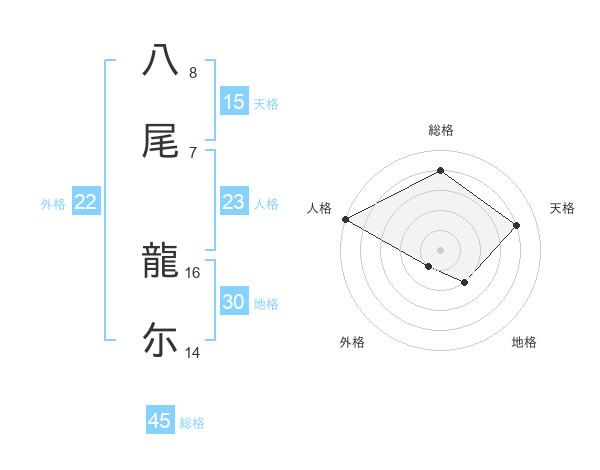 八尾 龍尓さんの総格は45画の4点!