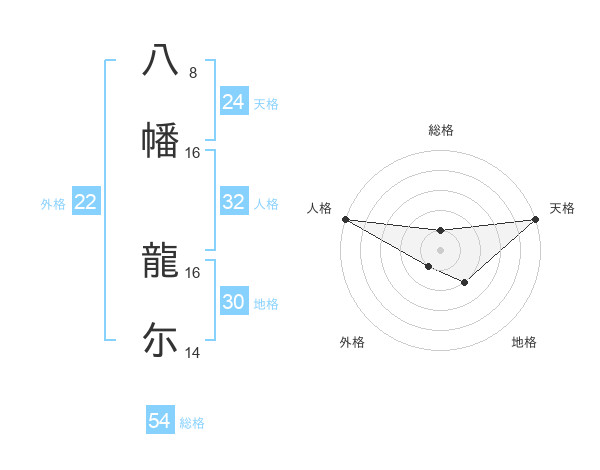 八幡 龍尓さんの外格は22画の1点!