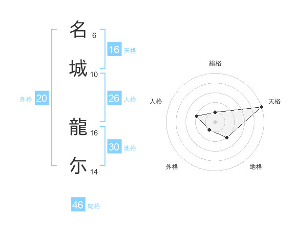 名城 龍尓さんの総格は46画の1点!