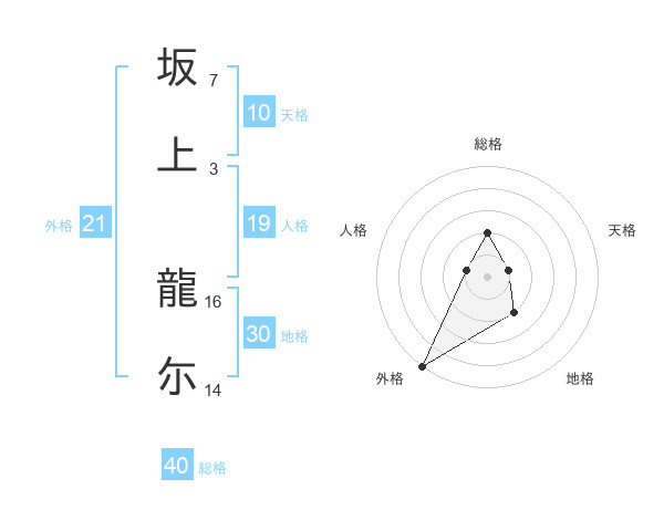 坂上 龍尓さんを姓名の画数から五運を鑑定