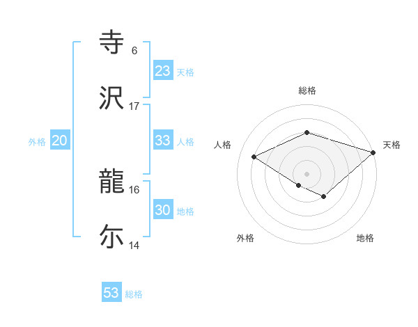 寺沢 龍尓さんを姓名の画数から五運を鑑定