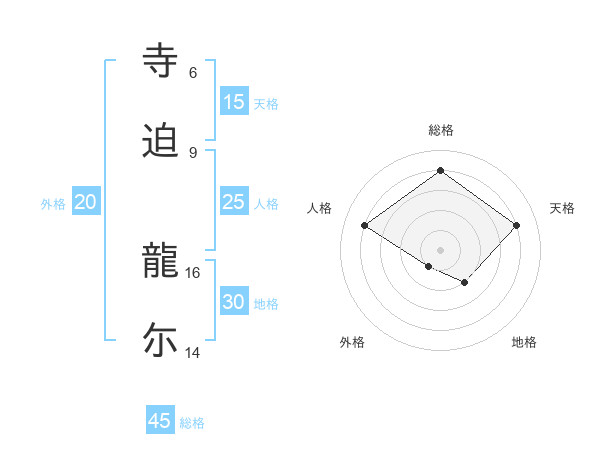 寺迫 龍尓さんの総格は45画の4点!