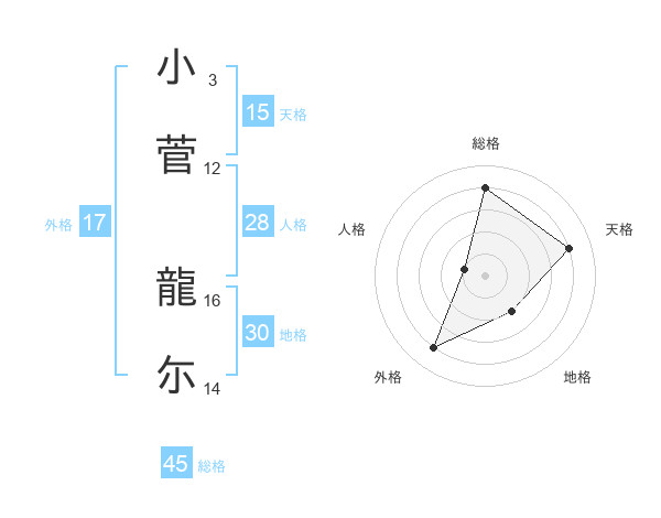 小菅 龍尓さんを姓名の画数から五運を鑑定