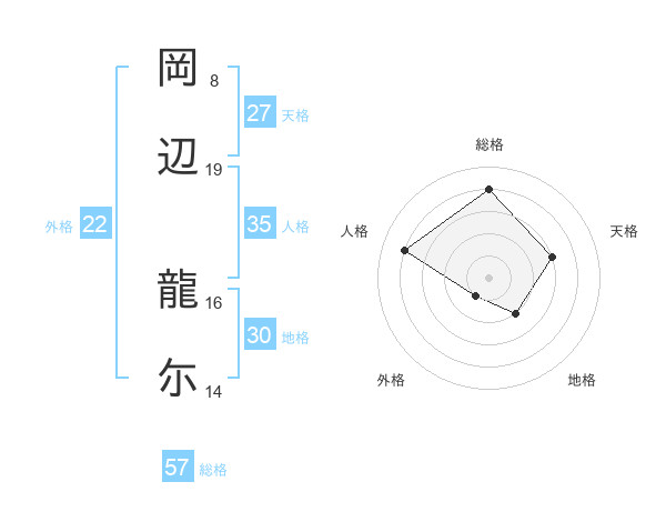 岡辺 龍尓さんの外格は22画の1点!