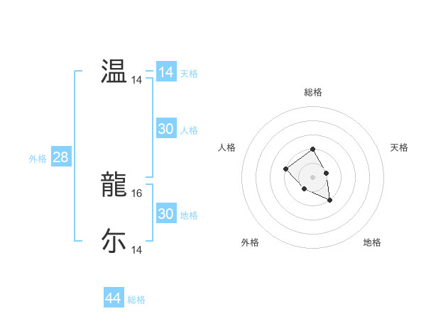 温 龍尓さんの総格は44画の2点!