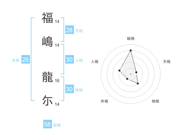 福嶋 龍尓さんを姓名の画数から五運を鑑定