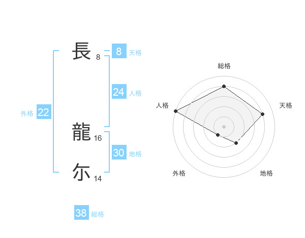 長 龍尓さんの総格は38画の4点!