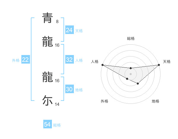 青龍 龍尓さんの総格は54画の1点!