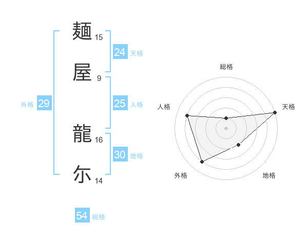 麺屋 龍尓さんの天格は24画の5点!