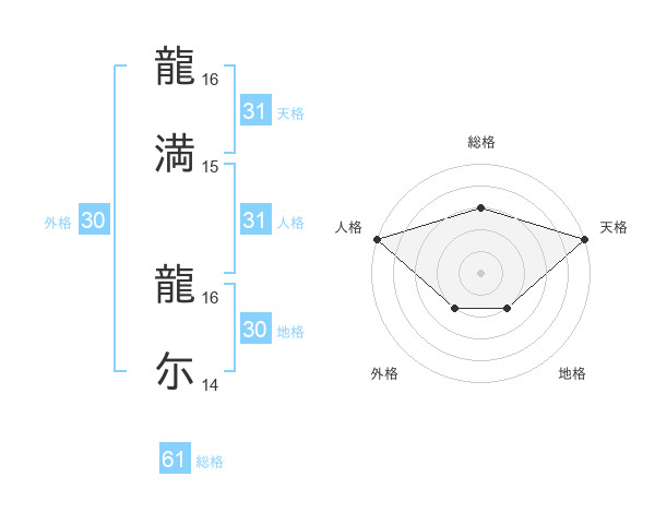 龍満 龍尓さんを姓名の画数から五運を鑑定