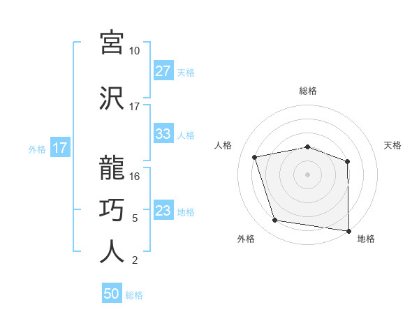 宮沢 龍巧人さんを姓名の画数から五運を鑑定