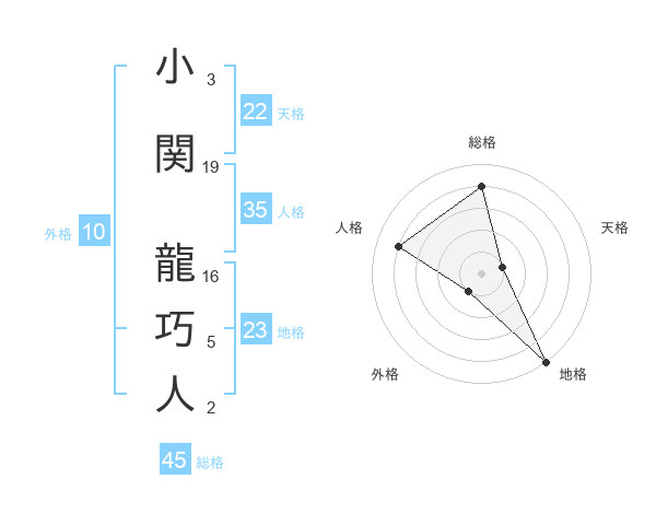 小関 龍巧人さんを姓名の画数から五運を鑑定