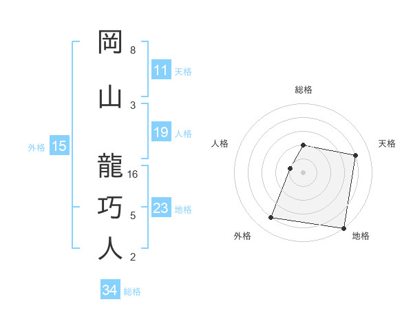 岡山 龍巧人さんを姓名の画数から五運を鑑定
