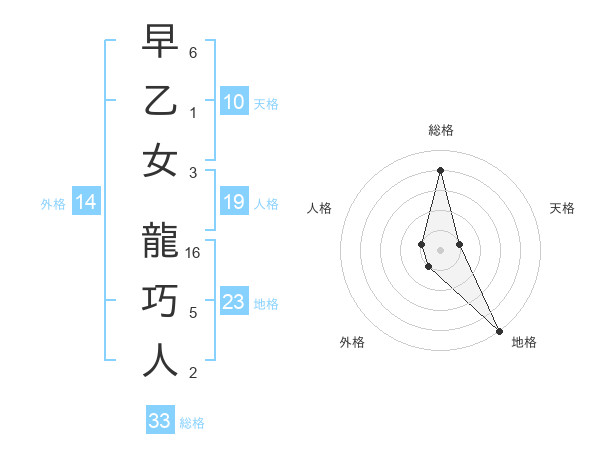 早乙女 龍巧人さんを姓名の画数から五運を鑑定