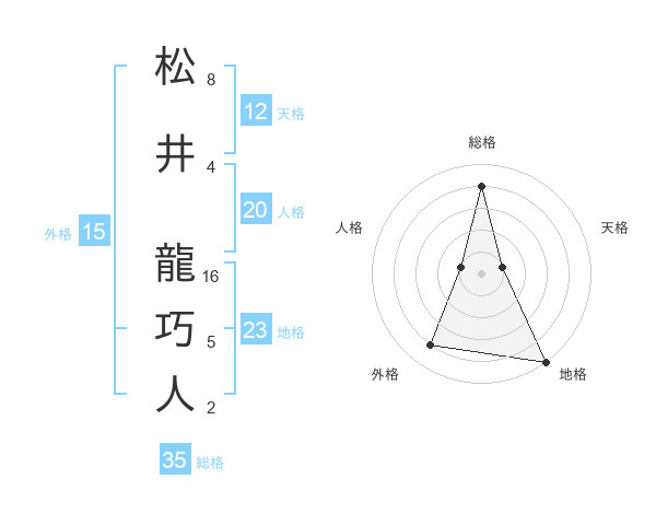 松井 龍巧人さんを姓名の画数から五運を鑑定