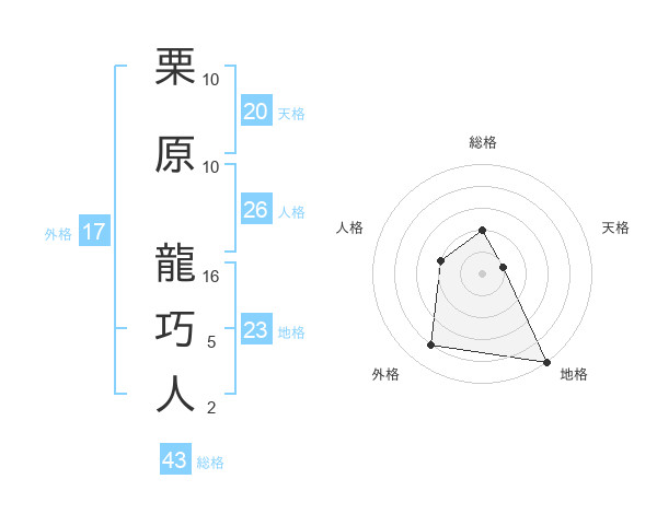 栗原 龍巧人さんを姓名の画数から五運を鑑定
