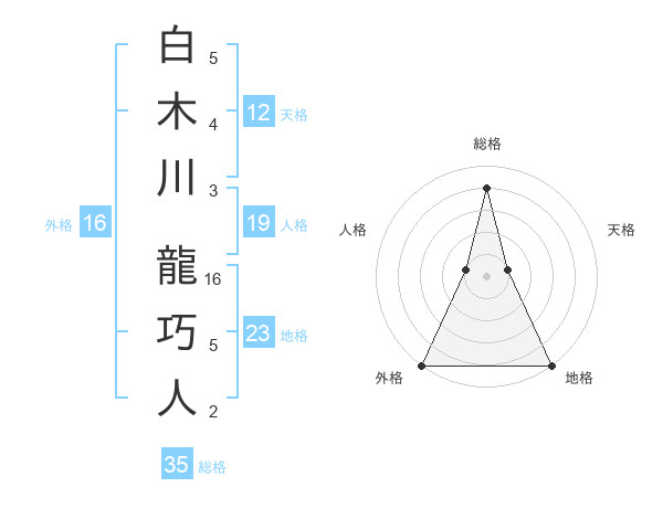 白木川 龍巧人さんを姓名の画数から五運を鑑定