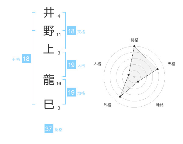 井野上 龍巳さんを姓名の画数から五運を鑑定