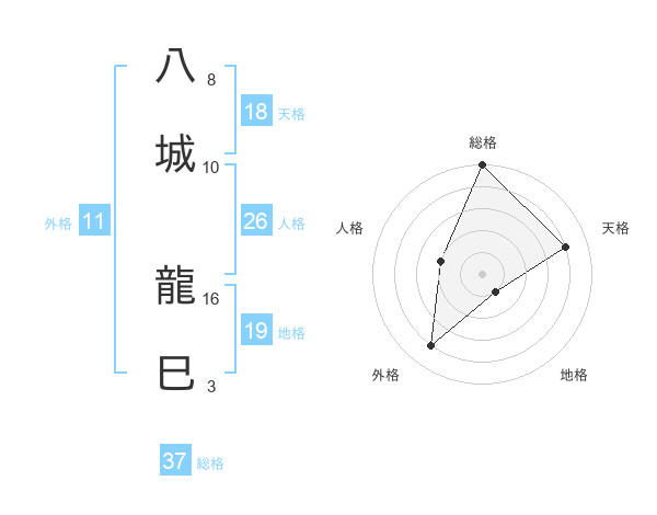 八城 龍巳さんの総格は37画の5点!