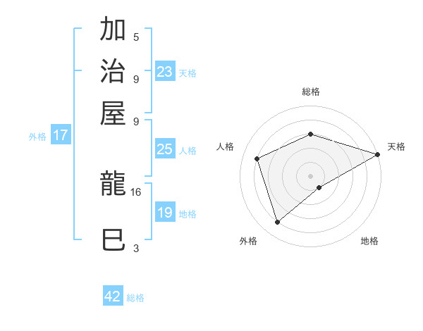 加治屋 龍巳さんを姓名の画数から五運を鑑定