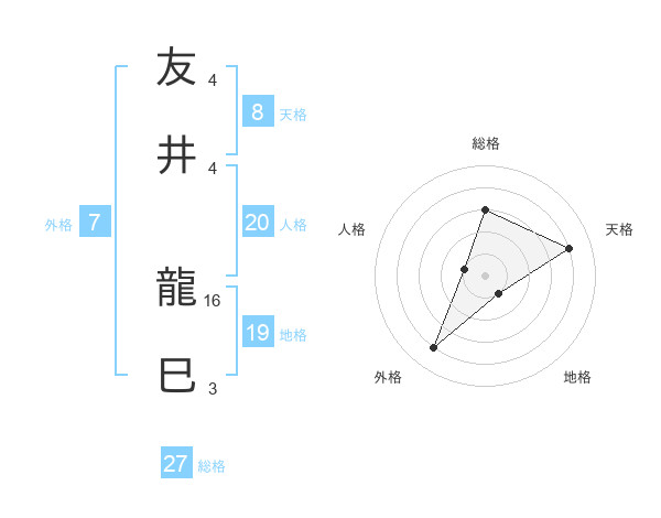 友井 龍巳さんを姓名の画数から五運を鑑定
