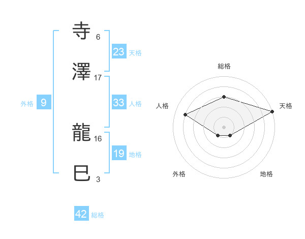 寺澤 龍巳さんの天格は23画の5点!