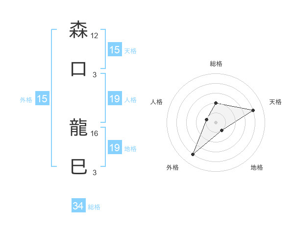 森口 龍巳さんの天格は15画の4点!
