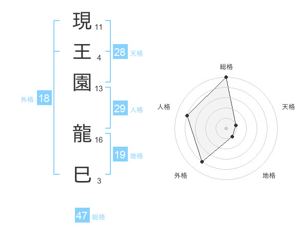 現王園 龍巳さんを姓名の画数から五運を鑑定